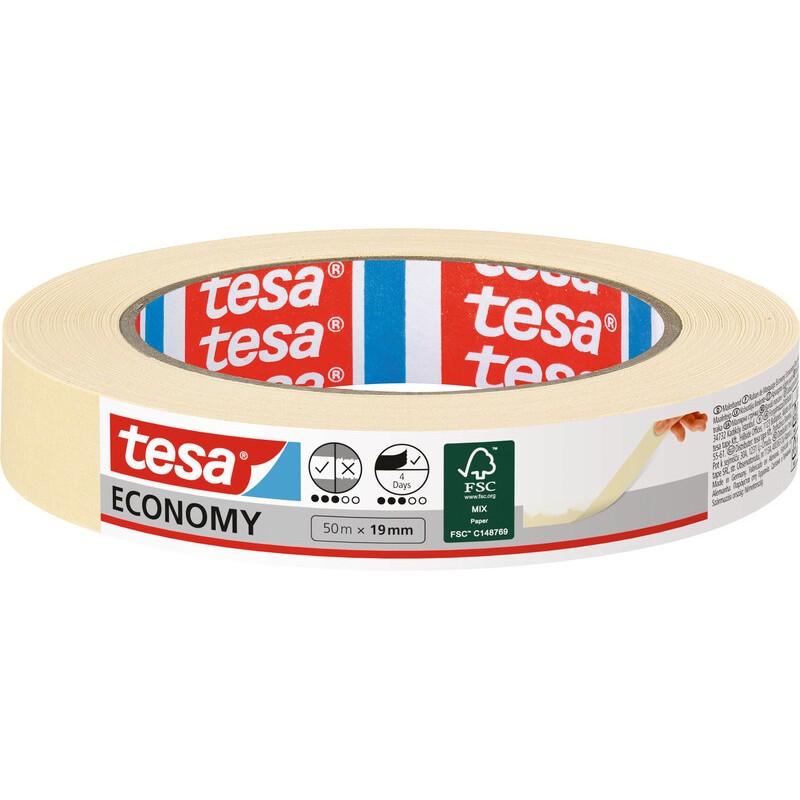TESA® Malerband universal Recycling leicht gekrepptes Allzweck-Abdeckband aus 55% nachwachsenden Rohstoffen, für einfache Maler- und Abdeckarbeiten im Innenbereich, zum Bündeln leichter Gegenstände, zum Verpacken und Markieren, gut von Hand einreissbar, konturgenau, für kurzfristige Anwendungen bis zu 3 Tagen, lösungsmittelfrei.