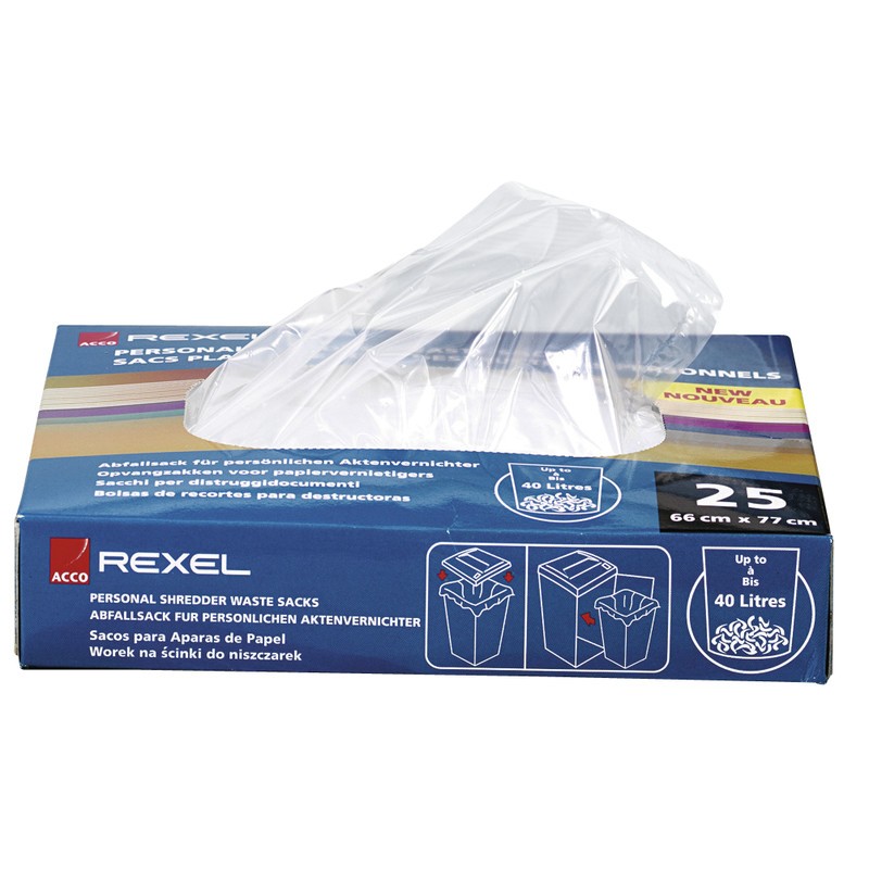 REXEL® PP-Abfallsäcke für Aktenvernichter leicht perforiert, damit die Luft entweichen kann und statische Aufladung vermieden wird, transparent.