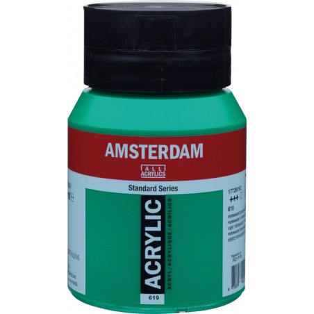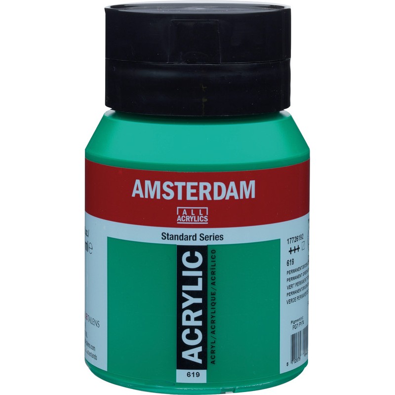AMSTERDAM Acrylic Standard lichtecht, mit Wasser verdünnbar, nahezu geruchlos, aussergewöhnlich haltbarer Farbfilm (Bindemittel aus 100% Acrylharz) für ein unvergängliches Resultat, alkalibeständig und daher besonders auch für Wandmalereien geeignet. Flasche zu 500 ml