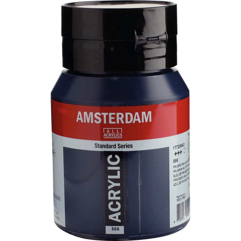 AMSTERDAM Acrylic Standard lichtecht, mit Wasser verdünnbar, nahezu geruchlos, aussergewöhnlich haltbarer Farbfilm (Bindemittel aus 100% Acrylharz) für ein unvergängliches Resultat, alkalibeständig und daher besonders auch für Wandmalereien geeignet. Flasche zu 500 ml