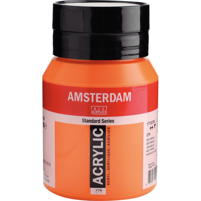 AMSTERDAM Acrylic Standard lichtecht, mit Wasser verdünnbar, nahezu geruchlos, aussergewöhnlich haltbarer Farbfilm (Bindemittel aus 100% Acrylharz) für ein unvergängliches Resultat, alkalibeständig und daher besonders auch für Wandmalereien geeignet. Flasche zu 500 ml
