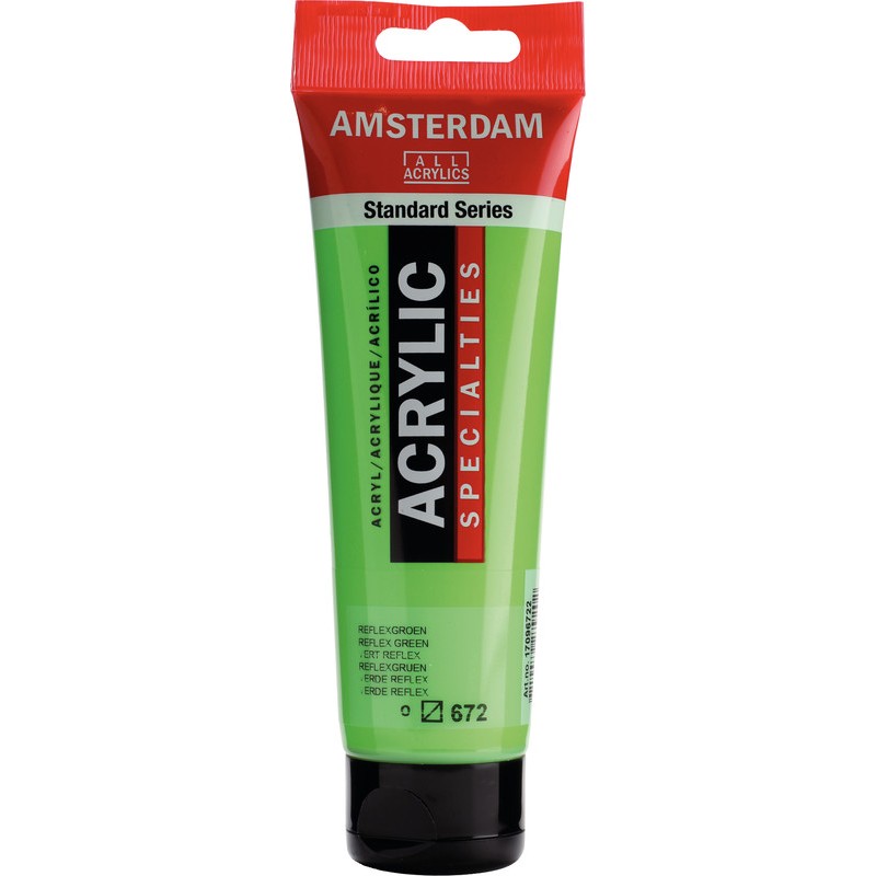 AMSTERDAM Acrylic Standard lichtecht, mit Wasser verdünnbar, nahezu geruchlos, aussergewöhnlich haltbarer Farbfilm (Bindemittel aus 100% Acrylharz) für ein unvergängliches Resultat, alkalibeständig und daher besonders auch für Wandmalereien geeignet. Tube zu 120 ml