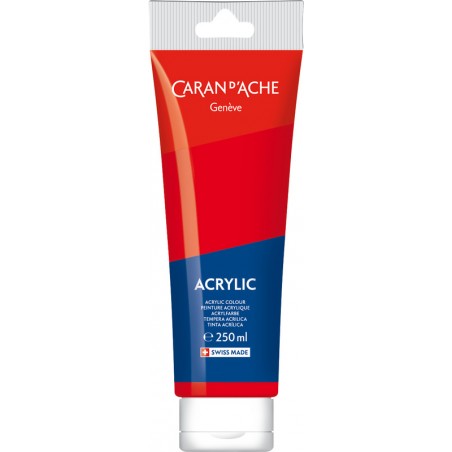 CARAN D'ACHE Acrylic leuchtende Acrylfarben, bilden keine Risse, werden nicht matt, lichtecht, mit Wasser verdünnbar, hohe Pigmentkonzentration, geeignet für glatte und strukturierte Oberflächen wie Leinwand, Gewebe, Stoff, Papier, Karton, Glas, Kunststoff, Metall, Holz etc., kann mit Pinsel oder Spachtel aufgetragen werden. Tube zu 250 ml.