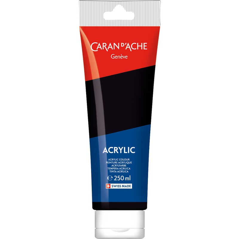 CARAN D'ACHE Acrylic leuchtende Acrylfarben, bilden keine Risse, werden nicht matt, lichtecht, mit Wasser verdünnbar, hohe Pigmentkonzentration, geeignet für glatte und strukturierte Oberflächen wie Leinwand, Gewebe, Stoff, Papier, Karton, Glas, Kunststoff, Metall, Holz etc., kann mit Pinsel oder Spachtel aufgetragen werden. Tube zu 250 ml.