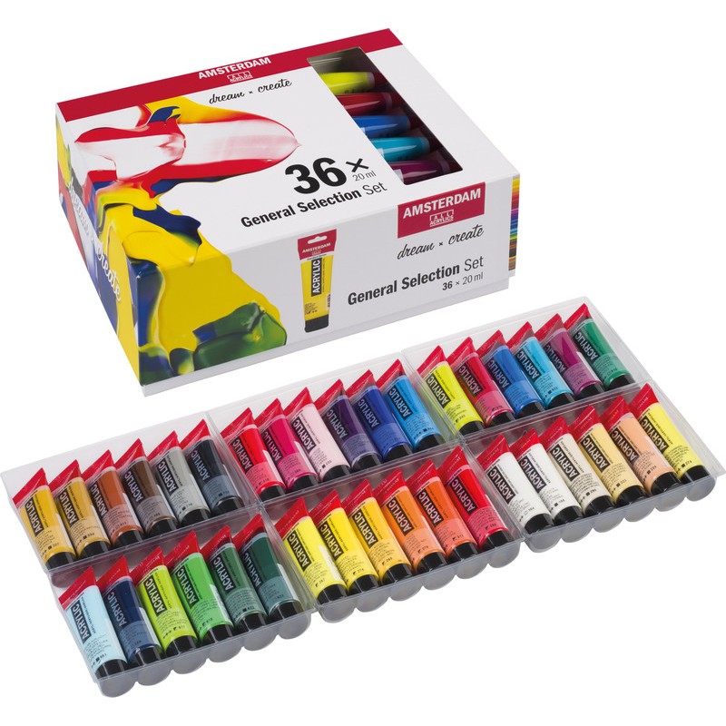 AMSTERDAM Acrylic Standard lichtecht, mit Wasser verdünnbar, nahezu geruchlos, aussergewöhnlich haltbarer Farbfilm (Bindemittel aus 100% Acrylharz) für ein unvergängliches Resultat, alkalibeständig und daher besonders auch für Wandmalereien geeignet. Tube zu 20 ml
