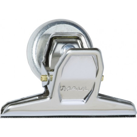 MAUL Briefklemmer pro mit Magnet aus Stahl, mit extrem kräftiger Doppelschenkel-Stahlfeder, sehr hohe Auszugskraft, grosse Klemmweite, durch spezielle Geometrie verwindungssteif, mit Griffmulde gegen Abrutschen des Fingers, mit Magnet, Haftkraft 4,5 kg, Unterseite des Magnets mit Schutzfolie, universell einsetzbar z. B. zum Anbringen an Maschinen oder bei der Inventur an Regalen, Breite 75 mm, Klemmweite 20 mm. Packung zu 3 Stück. Garantie: 3 Jahre. Nachhaltigkeit eco:plus: umweltfreundliche Verpackung.