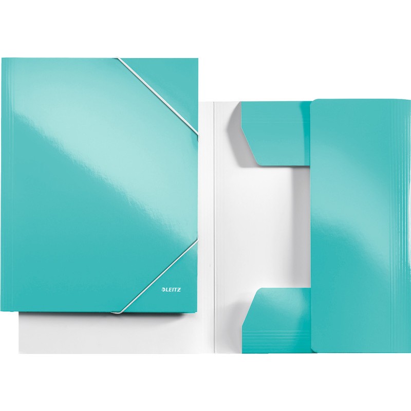 LEITZ® Gummibandmappe WOW in brillanten WOW Farben in Duo-Optik, aus PP-laminiertem Karton, 300 g/m2, mit 3 Einschlagklappen, mit Gummibandverschluss, Fassungsvermögen bis 250 Blatt, für Format A4. Nachhaltigkeit eco:plus: Zertifikat: FSC.