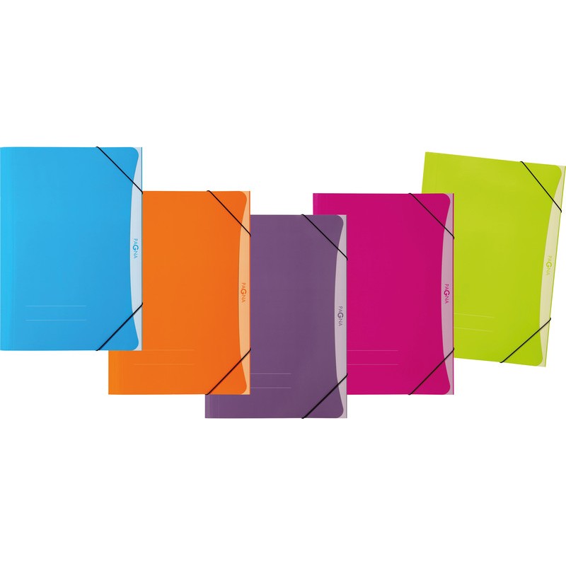PAGNA® Gummibandmappe Trend aus Karton, 375 g/m2, mit 3 Einschlagklappen, mit Gummibandverschluss, Fassungsvermögen bis 20 mm, farbig sortiert, pink, blau, grün, orange und violett.