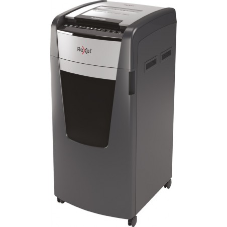 REXEL® Aktenvernichter Optimum AutoFeed+ 750X mit 140 l Auffangbehälter, volle DIN A4-Arbeitsbreite von 230 mm, Sicherheitsstufe P-4, schneidet manuell bis zu 20 Blatt pro Vorgang und bis zu 750 Blatt in automatischer Papierzufuhr, 4 Std. pausenloses Schreddern, vernichtet Heft- und Büroklammern und Kreditkarten, passwortgeschützte Papierzuführung bei unbeaufsichtigtem Betrieb, Motorleistung: 700 W, äusserst geräuscharmer Betrieb unter 55 dBA, automatische An- und Abschaltung, Leuchtanzeige für vollen Abfallbehälter, Abkühlphase und Überhitzungsschutz, einfache, intuitive Bedienung durch Touch-Control-Tasten, Schlafmodus, schaltet automatisch nach 3 Min. Inaktivität auf Stand-by, Anti-Papierstau-Technologie, Rücklaufmodus, auf 4 Laufrollen einfach zu verschieben. Masse: B 510 x H 1062 x T 570 mm. Gewicht: 44,02 kg. Preis inkl. VRG. Zertifikat: CE, TÜV/GS. Partikelschnitt 4 x 30 mm