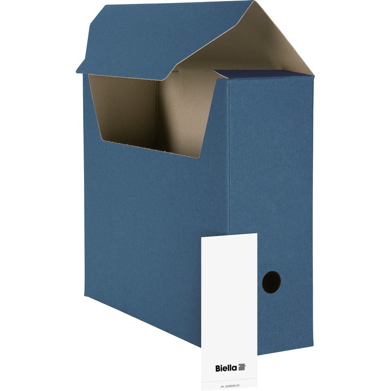 BIELLA Archivschachteln farbig aus farbigem Karton, mit Einsteckdeckel, Griffloch und Selbstklebe-Rückenschild, flach geliefert, zum Selbstmontieren. Aussenmasse: B 330 x H 270 x T 100 mm. Packung zu 10 Stück.