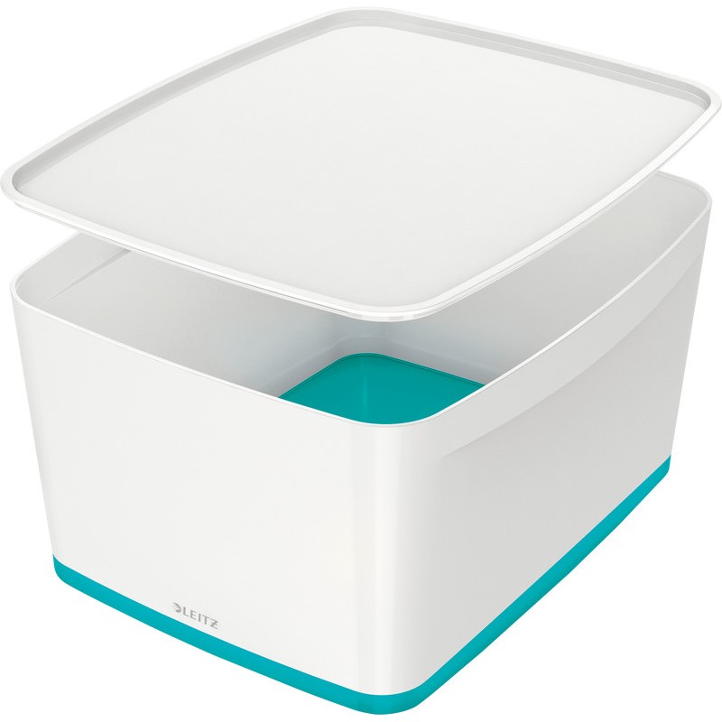 LEITZ® MyBox® Aufbewahrungsbox aus robustem, kratzfestem, wasserdichtem ABS, Hochglanzoptik, Deckel mit Einrastfunktion, ineinander stapelbar, dank abgerundeten Ecken leicht zu reinigen, modulares MyBox®-System optimal kombinierbar. Gross Volumen 18 l. Masse: B 318 x H 198 x T 385 mm.