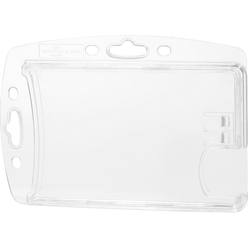 DURABLE Hartboxen für Betriebsausweise ohne Befestigung aus bruchsicherem PS, schützt und schafft durch die Daumenstanzung einen schnellen Zugriff, kombinierbar mit Kette, Clip, Textilband oder einem Jojo, einsetzbar im Hoch- oder Querformat. Innenmasse: B 87 x H 54 mm. Packung zu 10 Stück. Nachhaltigkeit eco:plus: recyclingfähig.