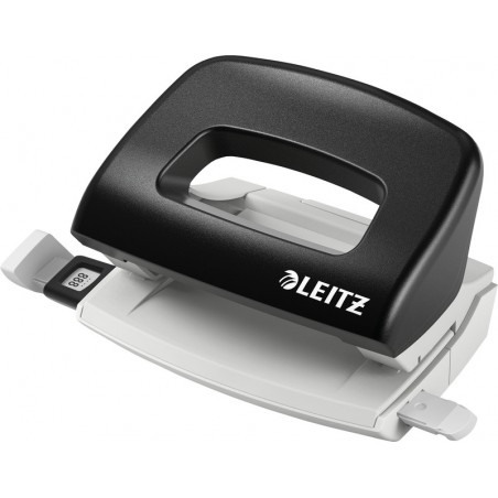 LEITZ® NeXXt Serie Mini-Locher 5058 Unterteil aus Metall, Griff aus ABS mit Metallbügel, für 8 cm Lochabstand, Loch Ø 5,5 mm, Anschlagschiene mit farbiger Bedruckung und Fenster, ultra-scharfe Lochstempel, patentierte Griffmulde für leichtes Lochen, Stanzvermögen 1 mm (10 Blatt). Garantie: 3 Jahre. Zertifikat: GS.