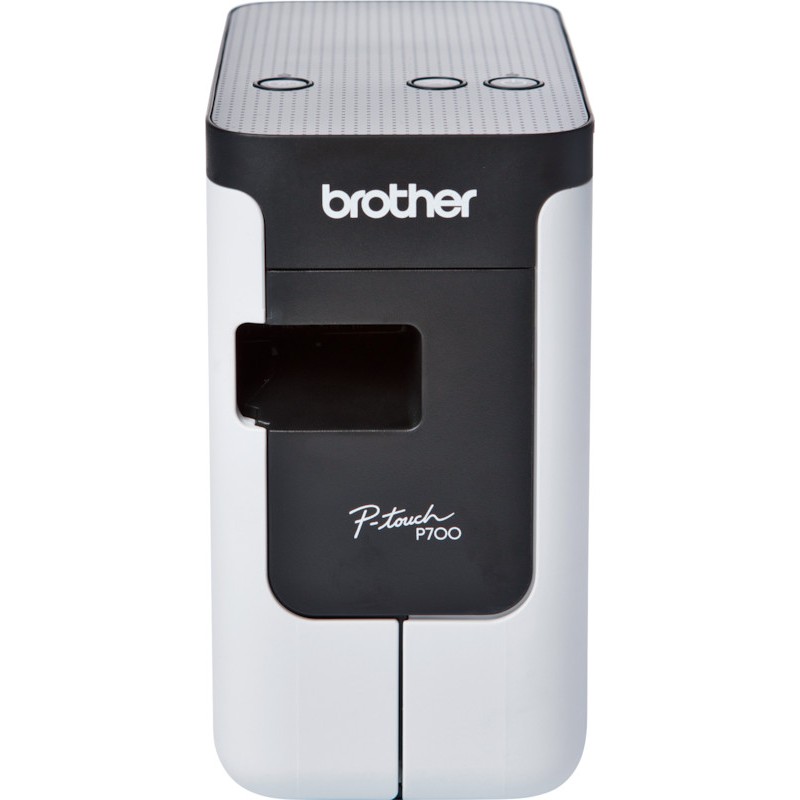 BROTHER® P-touch® P700 universelles Beschriftungsgerät, Steuerung mittels Computer, Auflösung 180 dpi, Druckgeschwindigkeit bis zu 30 mm/Sek., Schriftbänder 3,5, 6, 9, 12, 18 und 24 mm, automatische Schnittvorrichtung. Im Lieferumfang enthalten: Netzadapter, Band 24 mm x 4 m weiss/schwarz (TZe-251) und USB-Kabel. Stromversorgung: Netzadapter. Systemvoraussetzungen: Windows® Vista, 7 und 8; Mac OS X v. 10.7.x, 10.8.x oder höher. Masse: B 78 x H 143 x T 152 mm. Gewicht: ca. 710 g. Preis inkl. VRG.