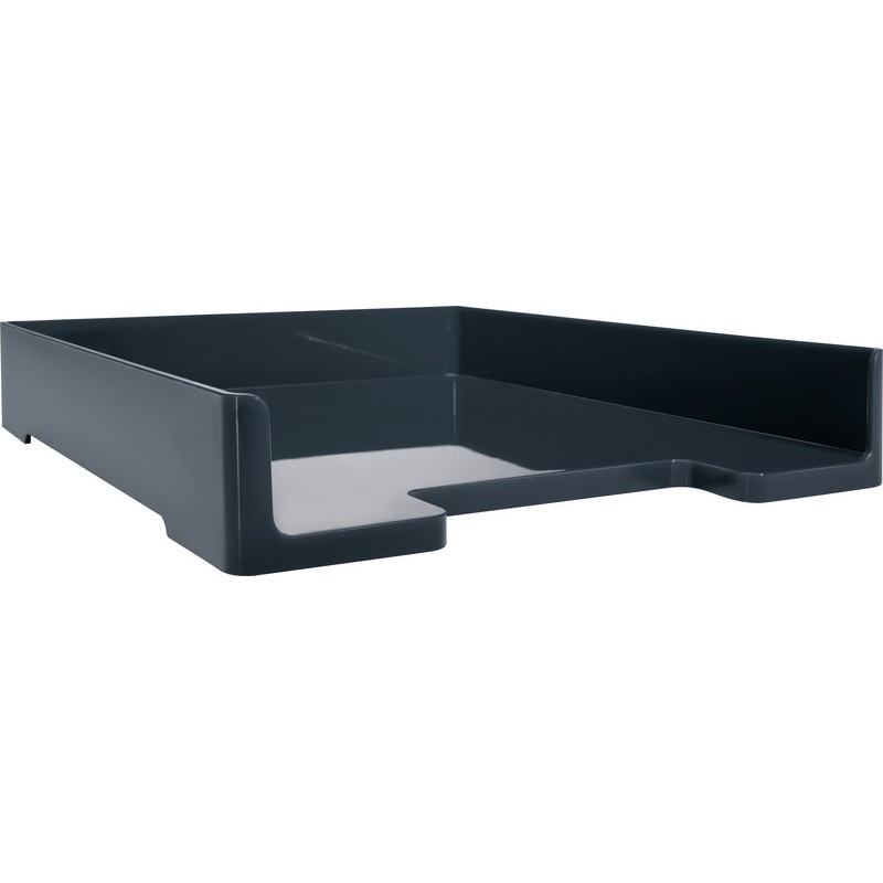SIGEL Briefkorb Eyestyle aus High-Gloss ABS, aufeinander oder versetzt stapelbar, seitliche Designausschnitte, breite Griffzone, für Format A4/C4. Masse: B 268 x H 50 x T 333 mm.