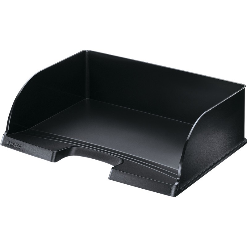 LEITZ® Briefkorb Plus Jumbo quer aus PS, patentiertes Press & Click System für stabiles Stapeln ohne zusätzliche Verbindungsclips oder Distanzelemente, stapelbar auch mit LEITZ® Briefkörben Plus Standard quer 5218, stapelbar bis zu 10 Stück, für Format A4, Übergrössen und Hängemappen. Masse: B 363 x H 103 x T 273 mm.