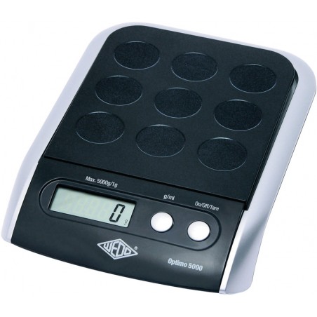 WEDO® Digitalwaage Optimo elektronisch, Gehäuse aus stabilem ABS, gut lesbare LCD-Anzeige, Ziffernhöhe 13 mm, Ein/Aus/Tara-Funktion, Batteriebetrieb 4 x 1,5 V AAA Micro (mitgeliefert), Abschaltautomatik nach ca. 1 Min. Nichtgebrauch. Masse: B 230 x H 38 x T 160 mm, Wiegeteller: B 150 x T 130 mm. Gewicht: 472 g. Garantie: 3 Jahre. Preis inkl. VRG. Skalaeinteilung: 1 g bis 5000 g