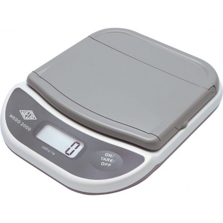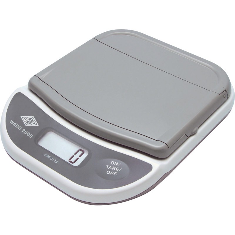 WEDO® Brief- und Paketwaage 2000 elektronisch, Ein/Aus/Tara-Funktion, LCD-Anzeige, aufklappbarer Wiegeteller, Batteriebetrieb 4 x 1,5 V AA Mignon (mitgeliefert), Netzbetrieb (optional), Abschaltautomatik nach 2 Min. Nichtgebrauch im Batteriebetrieb, Skalaeinteilung: 1 g bis 2000 g. Masse: B 170 x H 42 x T 205 mm, Wiegeteller: B 160 x T 153 mm. Gewicht: 720 g. Garantie: 3 Jahre. Preis inkl. VRG.
