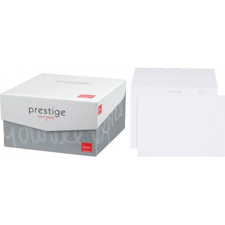 ELCO hochwertige Briefumschläge Prestige in Bürogrosspackung weiss, ohne Innendruck. Nachhaltigkeit eco:plus: recyclingfähig. Zertifikat: FSC. C5, mit Optifix® Haftklebeverschluss 229 x 162 mm, Façon DNG-HK. Schachtel zu 250 Stück.