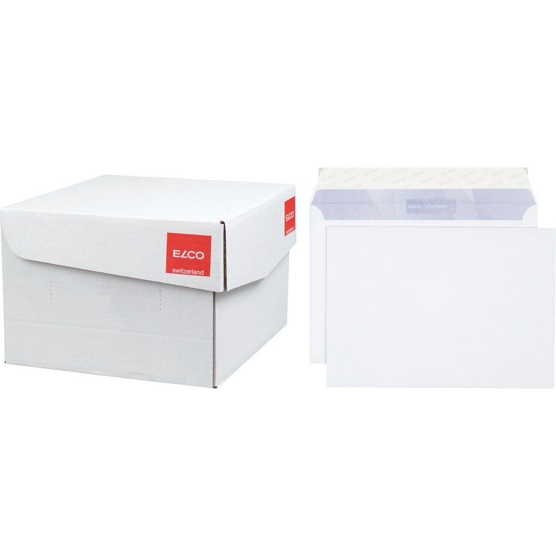 ELCO Briefumschläge Premium in Bürogrosspackung hochweisse Top-Qualität, chlorfrei, grauer Innendruck aus 100% Wasserfarbe. Nachhaltigkeit eco:plus: recyclingfähig. Zertifikat: FSC. C5, mit Optifix® Haftklebeverschluss 229 x 162 mm, Façon DNG-HK. Schachtel zu 500 Stück.