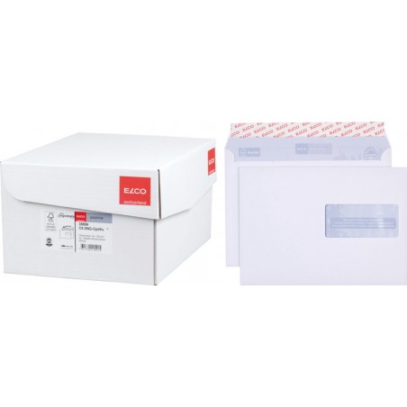 ELCO Briefumschläge Proclima in Bürogrosspackung aus 100% Recyclingmaterial, grauer Innendruck aus 100% Wasserfarbe, hervorragende Opazität, Fenster aus nachwachsenden biologisch abbaubaren Rohstoffen (nach EN 13432). Nachhaltigkeit eco:plus: recyclingfähig. Zertifikat: FSC, Der Blaue Engel. C5, mit Optifix® Haftklebeverschluss 229 x 162 mm, Façon DNG-HK. Schachtel zu 500 Stück.