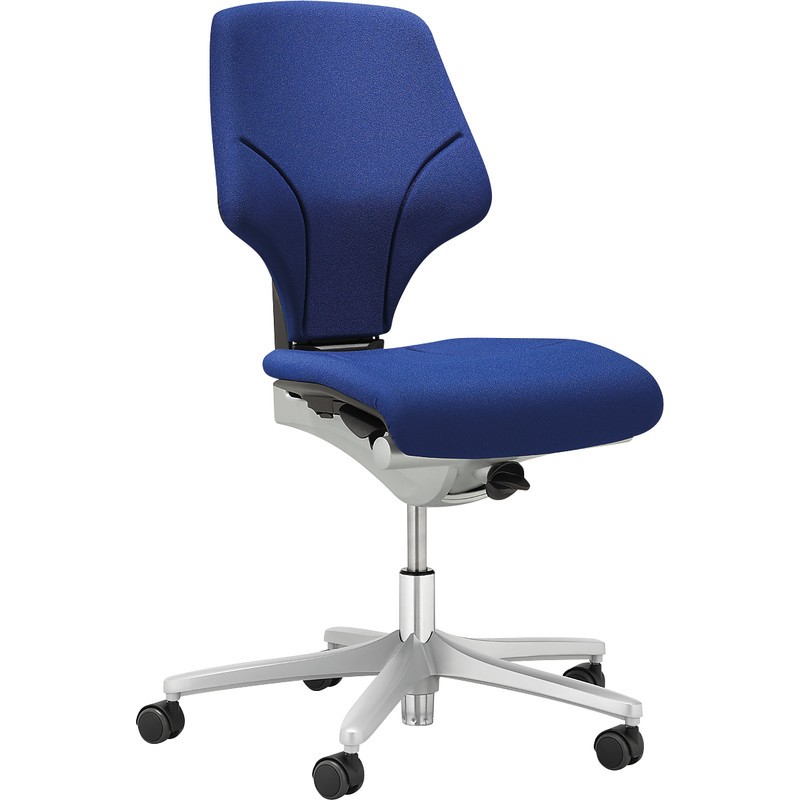 GIROFLEX® Bürostuhl 64 stufenlose Sitzhöhenverstellung, höhenverstellbare Lordosenstütze im Rücken integriert, Sitzfläche in der Tiefe verstellbar, Organicmove Synchronmechanik zur synchronen Verstellung der Sitz- und Rückenlehnenneigung mit Körpergewichtseinstellung, Zwei-Zonen Sitzprofil, 5-Stern-Aluminium-Fusskreuz, Hartbodenrollen, Sitzbreite 450 mm, -höhe 400 - 520 mm, -tiefe 415 - 440 mm, Rückenhöhe 470 - 540 mm, zu grossen Teilen recycelbar. Garantie: 5 Jahre. Zertifikat: GS.
