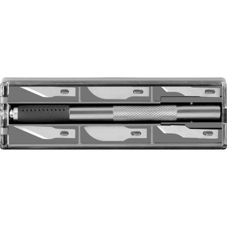 WESTCOTT® Skalpell aus Metall, gummierte Griffzone, integrierter Magnet im Griffende zum einfachen Entnehmen der Klinge aus der Box. Set zu Skalpell und 6 Klingen.