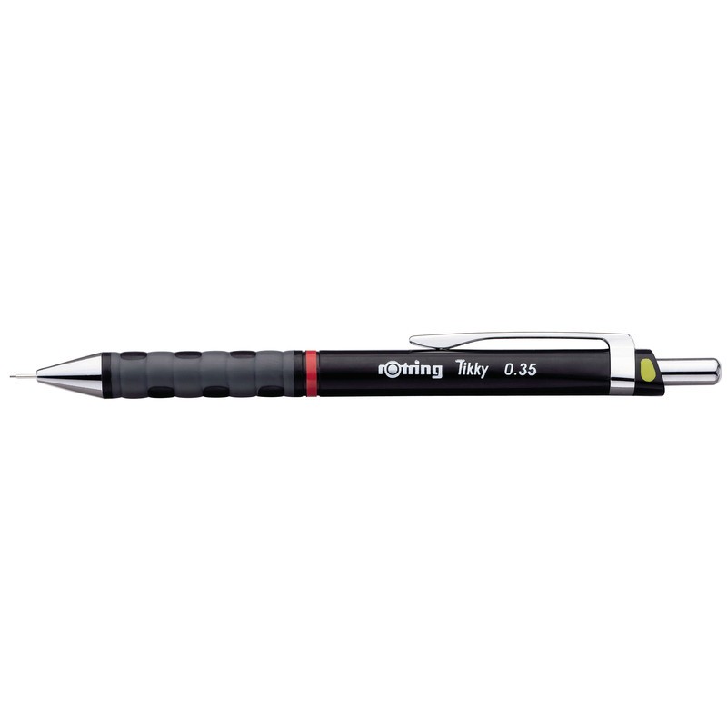 ROTRING Druckbleistift Tikky schwarz Kunststoffschaft mit Farbcodierung, Metallclip, mit starrem Führungsröhrchen, Radiergummi. Nachhaltigkeit eco:plus: zerlegbar konstruiert, verlängertes Produktleben, umweltfreundliche Verpackung. für 0,35 mm Minen
