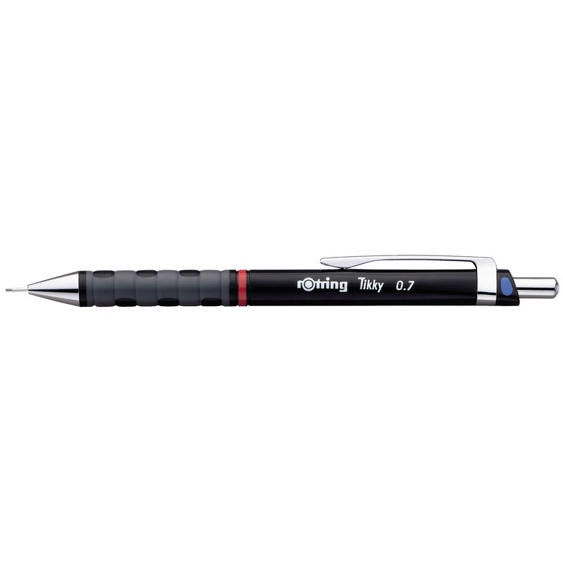 ROTRING Druckbleistift Tikky schwarz Kunststoffschaft mit Farbcodierung, Metallclip, mit starrem Führungsröhrchen, Radiergummi. Nachhaltigkeit eco:plus: zerlegbar konstruiert, verlängertes Produktleben, umweltfreundliche Verpackung. für 0,7 mm Minen