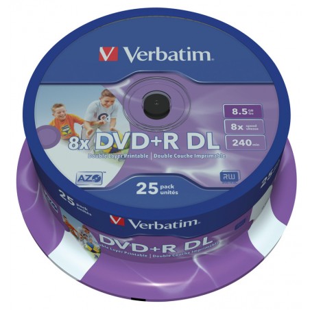 VERBATIM(TM) DVD+R 8x 8,5 GB Matt Silver Double Layer einmalig beschreibbar, zweischichtige DVD, mit AZO-Aufnahmeschicht (Archivierungs-Lebensdauer bis zu 100 Jahre). Preis inkl. SUISA. Nachhaltigkeit eco:plus: zerlegbar konstruiert.