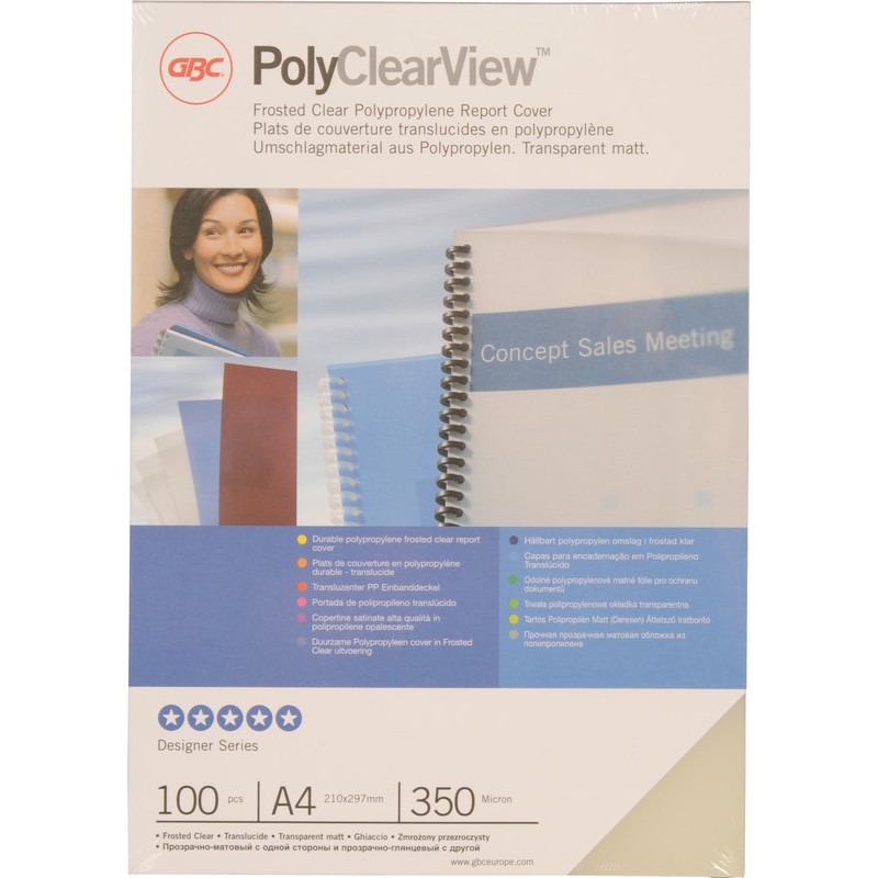 GBC® Einbandfolien PolyClearView aus recycelbarem PP, halbtransparent, Format A4. Nachhaltigkeit eco:plus: recyclingfähig.
