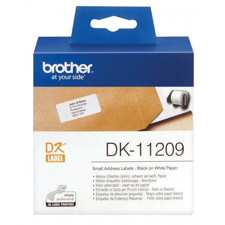 BROTHER Etiketten DK selbstklebend, Etiketten weiss, Schrift schwarz, für Thermo-Etikettendrucker. Adress-Etiketten, aus Papier