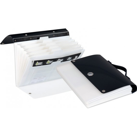 EXACOMPTA Fächermappe Crystal aus PP, inkl. farbige Etiketten 1 - 12, A - Z und Jan. - Dez., Tragegriff, für Format A4. 13 Fächer 13 farbige Fächer mit 12 Reitern zum Einschieben von Beschriftungsetiketten.