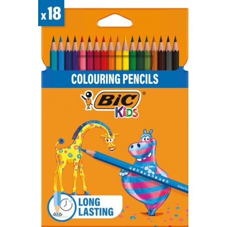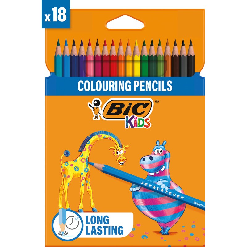 BIC® Farbstifte Evolution Kids widerstandsfähiger Farbstift aus Kunstharz, bruchsichere Mine, bissfeste Oberfläche, ideal für Kinder. Nachhaltigkeit eco:plus: recycelter Bestandteil, Recycelgehalt Abfall vor Gebrauch max. 50%. Zertifikat: NF Environment.