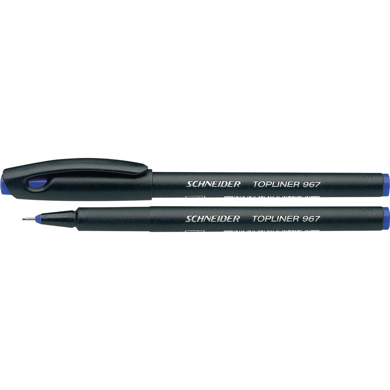 SCHNEIDER® Fineliner Topliner 967 Kappe mit Clip, metallgefasste Schreibspitze, Lineale und Schablonen geeignet, Cap-off Tinte: bis zu 3 Tage offen lagerfähig ohne einzutrocknen, Kappenende in der Schreibfarbe, nicht nachfüllbar, Strichbreite 0,4 mm.