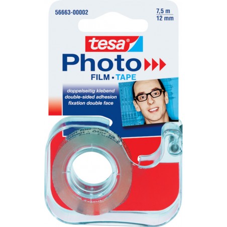 TESA® Doppelseitiges Klebeband Photo transparent, ideal zum dauerhaften Einkleben von Fotos, Abroller aus transparentem PS, mit Metallmesser.