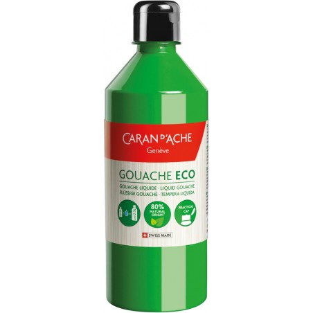 CARAN D'ACHE Gouache flüssig Eco lichtechte Farbe aus 80% natürlichen Inhaltsstoffen (ausser Neonfarben), wasserlöslich, hohe Deckkraft auch bei fünffacher Verdünnung mit Wasser, Dosierkopf für exaktes, sparsames Dosieren, haftet auf Papier, Karton, Holz, Glas, Metall, Salzteig etc., mit Seifenwasser von Händen, Böden und Tischen entfernbar, Flasche aus PET ohne BPA und Phthalate. Flasche zu 500 ml. Nachhaltigkeit eco:plus: umweltfreundliche Verpackung.