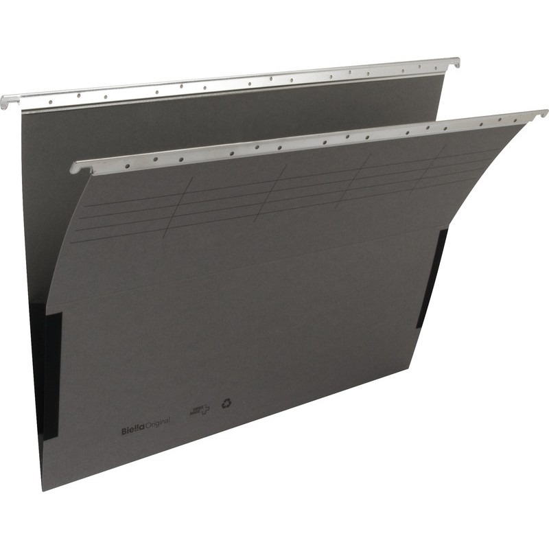 BIELLA ORIGINAL Hängemappe mit Frosch (Seitenfalz) aus starkem, strapazierfähigem Karton, Tragstangen aus Metall und Nylon-Gleitern, mit schwarzem Gewebefalz auf den Seiten, Format 32 x 25 cm.