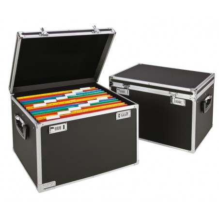 LEITZ® Hängemappen-Box flexible Ablagebox mit Aluminium-Umrandungen und verstärkten Ecken aus Metall, doppeltes Zahlenschloss. Masse: B 365 x H 340 x T 365 mm eingebaute Schienen können bis zu 30 gefüllte Hängemappen tragen, für die Aufbewahrung von 4 Ordnern A4 geeignet, Tragegriffe aus ABS.
