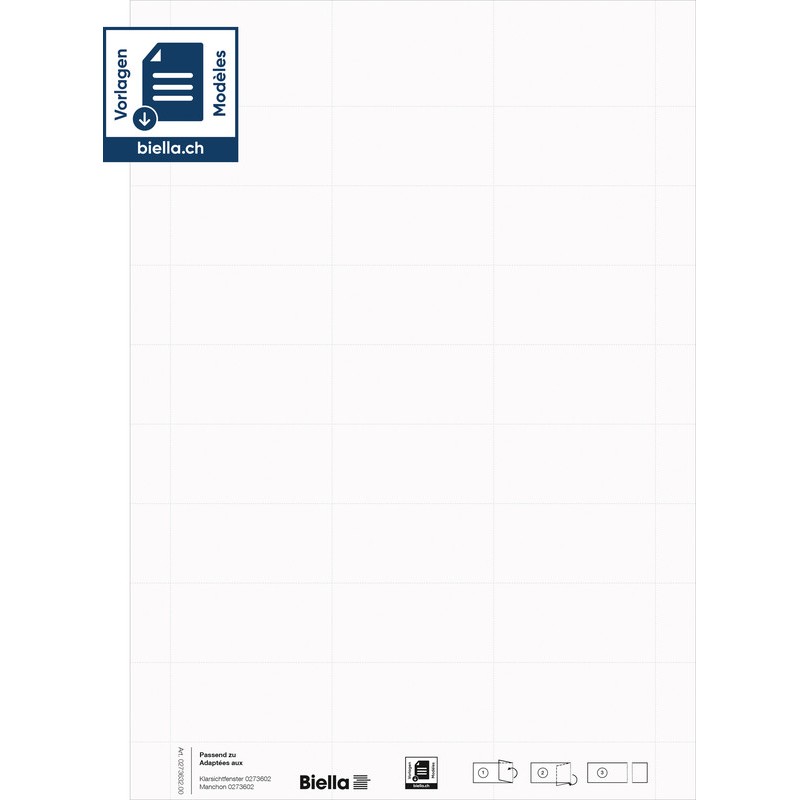BIELLA ORIGINAL Hängemappen Beschriftungsetiketten für Drucker aus Karton, 190 g/m2, Bogenformat A4, perforiert. Nachhaltigkeit eco:plus: Zertifikat: FSC. zu Metall-Clip-Reiter Bogen zu 27 Etiketten, Format 60 x 30 mm. Beutel zu 10 Bogen.