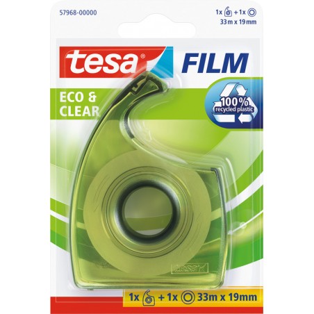 TESA® Handabroller Easy Cut® ecoLogo® Gehäuse aus 100% recyceltem PE, mit Metallmesser, für 33 m Bandlänge, Rollenbreite bis 19 mm. Nachhaltigkeit eco:plus: recycelter Bestandteil.