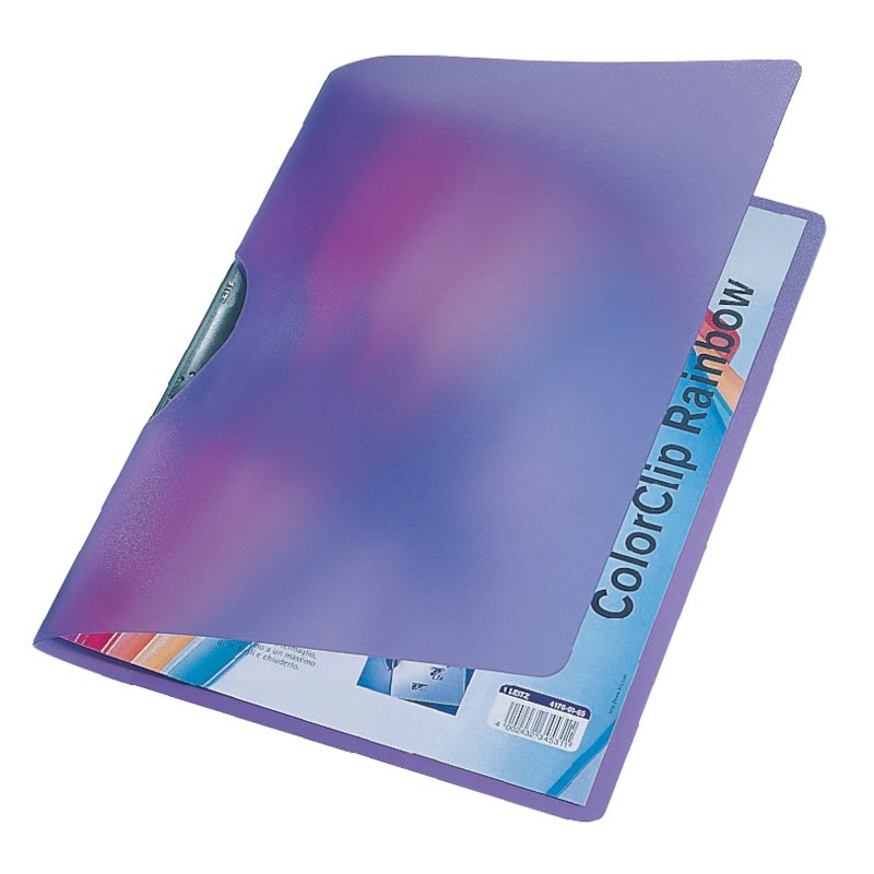 LEITZ® Klemmhefter ColorClip Rainbow aus PP-Folie in transluzenten Farben, Vorderdeckel ist ganz aufklappbar, Klemme aus Kunststoff, Fassungsvermögen bis zu 30 Blatt, für Format A4.
