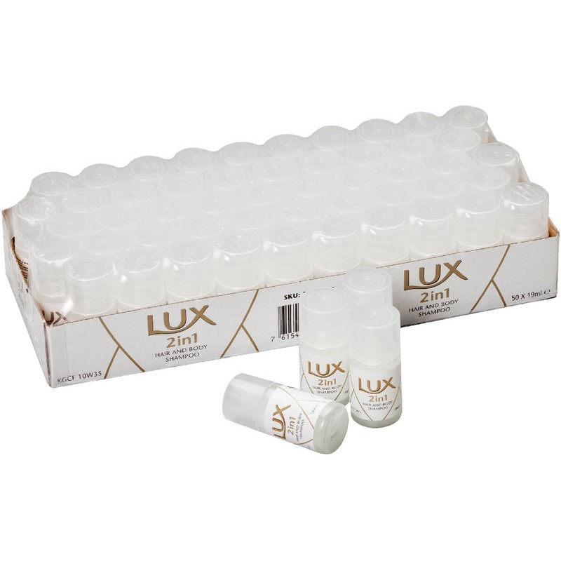 LUX Dusch- und Haarshampoo 2 in 1 kann auch als Badeschaum verwendet werden und ist optimiert für den Einsatz in Hotels, Pensionen und Gästezimmer, Inhalt 19 ml. Packung zu 50 Stück.