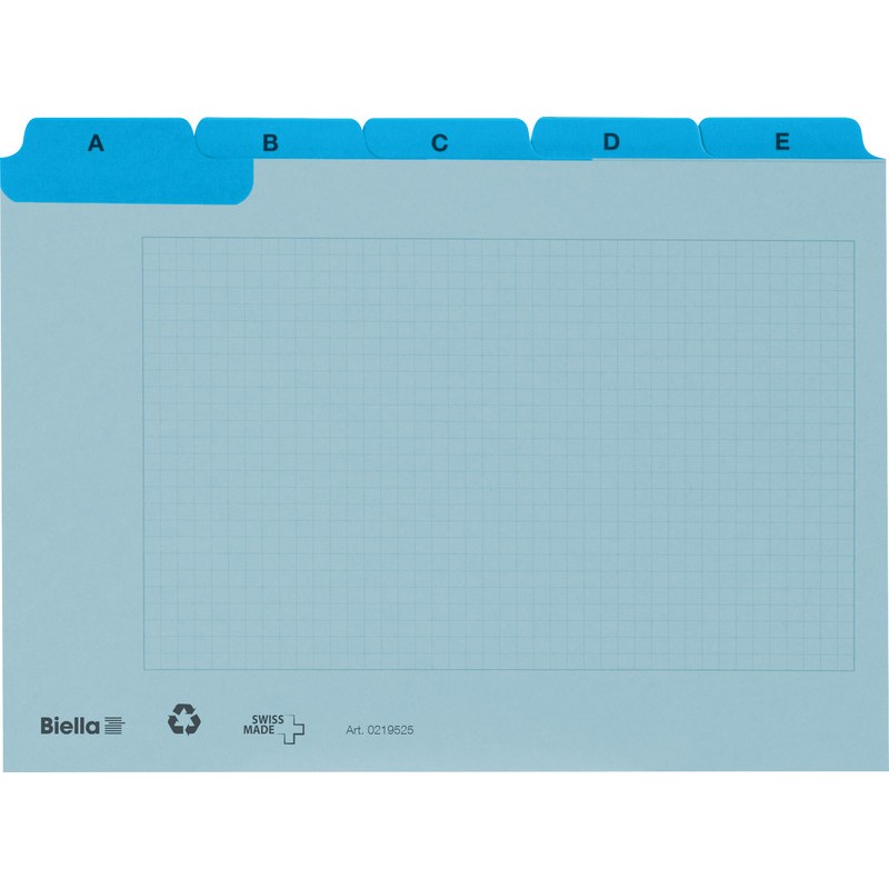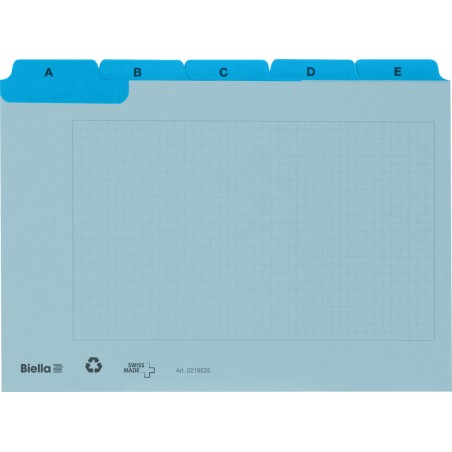 BIELLA Leitkarten Alphabet A - Z kariert aus Recyclingkarton, 450 g/m2, 5/5 Fahnen mit Verstärkung, Fahnenhöhe 9 mm. Satz zu 25 Karten. Nachhaltigkeit eco:plus: recycelter Bestandteil.