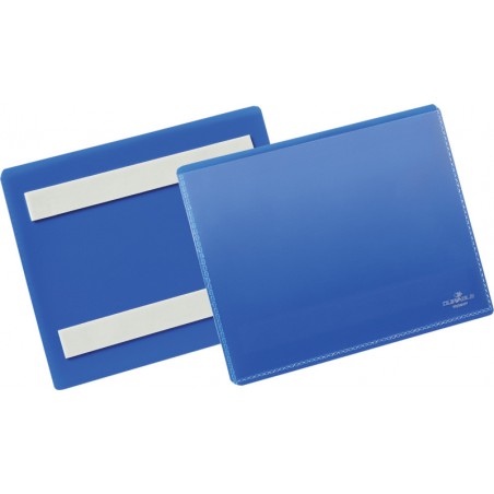 DURABLE Kennzeichnungstaschen selbstklebend mit 2 rückseitigen Permanenten-Klebestreifen, Anwendung an Kunststoffbehältern, Holz und Kartonagen, blaue Rückenfolie, blaue und transparente Vorderfolie aus PP, scannertauglich, dokumentenecht, einfache Beschriftung mit kostenloser Beschriftungssoftware Duraprint® unter www.duraprint.de. Packung zu 50 Stück.