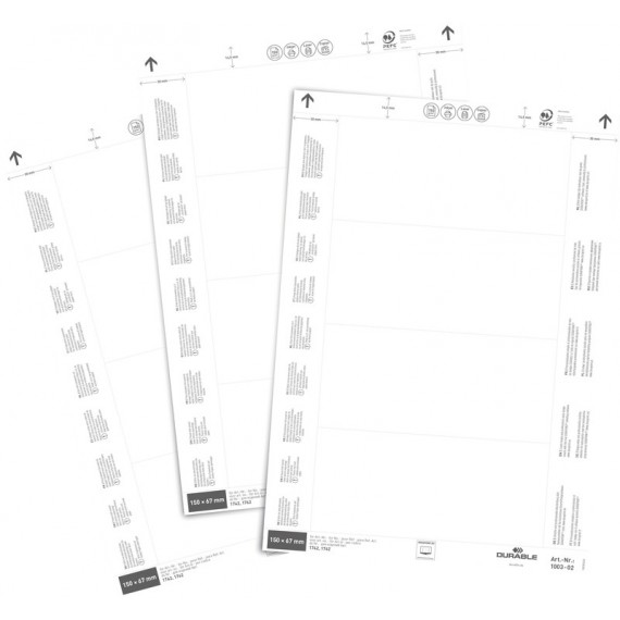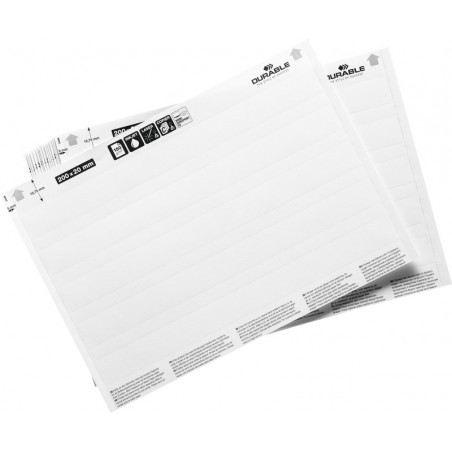 DURABLE Einsteckschilder Label Refill weiss, Etiketten-Bogen mikroperforiert, Format A5, zur professionellen Beschriftung im Lager und der Produktion, geeignet für DURABLE Scannerschienen Scanfix® und DURABLE Magnetband C-Profil, einfache Beschriftung mit kostenloser Beschriftungssoftware Duraprint® unter www.duraprint.de. Geeignet für Kopierer, Laser-/Inkjetdrucker und Farblaserdrucker/-kopierer. Beutel zu 20 Blatt. Nachhaltigkeit eco:plus: recyclingfähig.