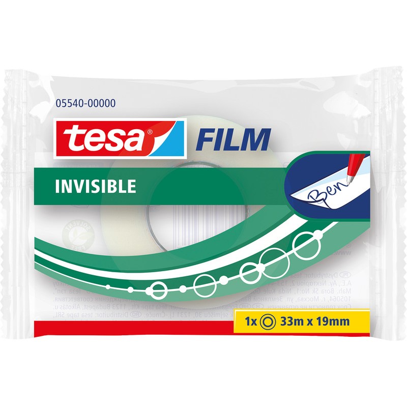 TESA® Klebeband Film invisible nahezu unsichtbar auf weissem Papier und matten Oberflächen, mit fast allen Schreibgeräten beschriftbar, leichtes und geräuschloses Abrollen, schattenfrei kopierbar, hohe Alterungsbeständigkeit, PP-Folie und lösungsmittelfreie Klebmasse.