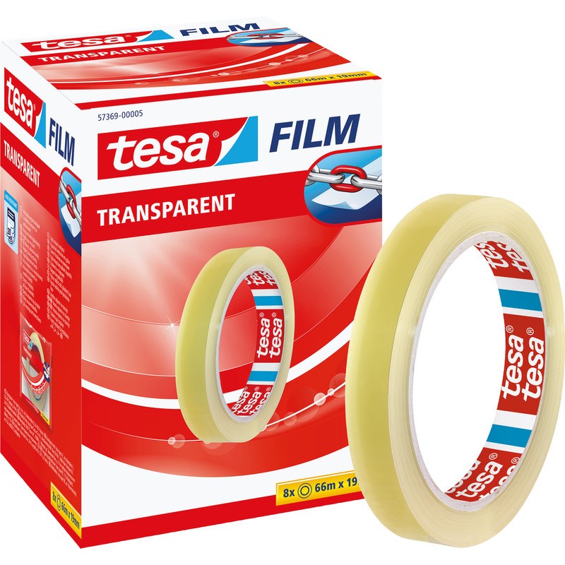TESA® Klebeband Film transparent gute Klebkraft, transparent, leise abrollbar, alterungsbeständig.