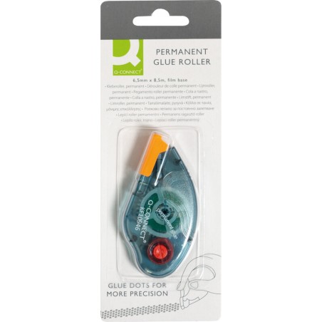 Q-CONNECT® Kleberoller permanent Klebstoffwaben für sauberes und präzises Kleben auf Papier, Karton, Fotos, synthetischen Materialien, Glas usw., lösungsmittelfrei, Bandmasse: B 6,5 mm x L 8 m, nicht nachfüllbar. Nachhaltigkeit eco:plus: umweltfreundliche Verpackung.