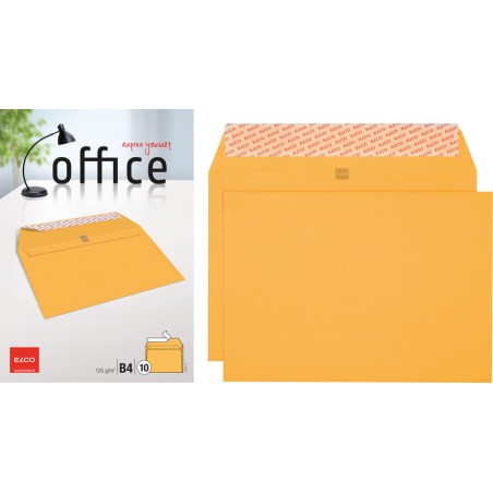 ELCO Briefumschläge Office Gelb Bank in Kleinpackung 100% Recycling, gelb. Nachhaltigkeit eco:plus: recyclingfähig. Zertifikat: FSC. B4, mit Optifix® Haftklebeverschluss 353 x 250 mm, Façon DNG-HK. Cello-Zip zu 10 Stück.